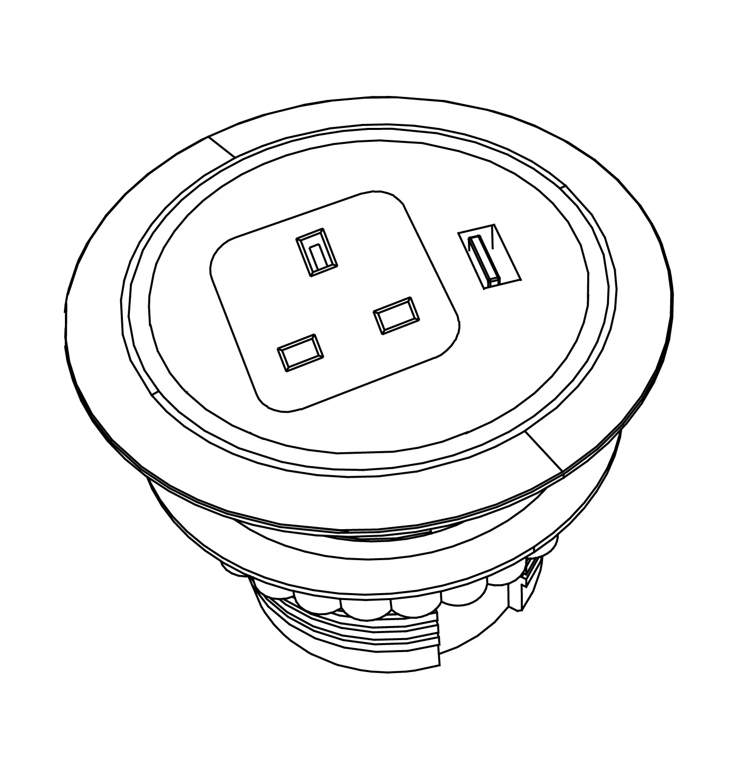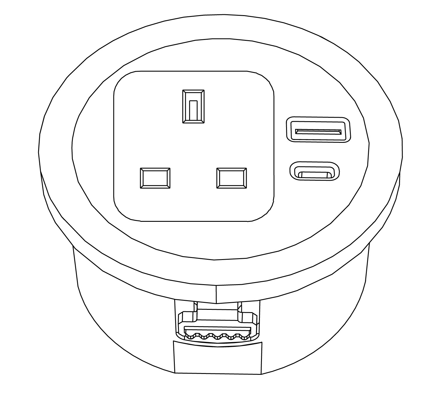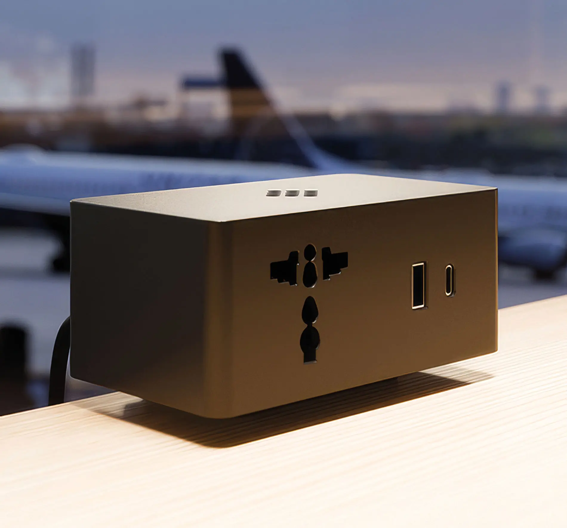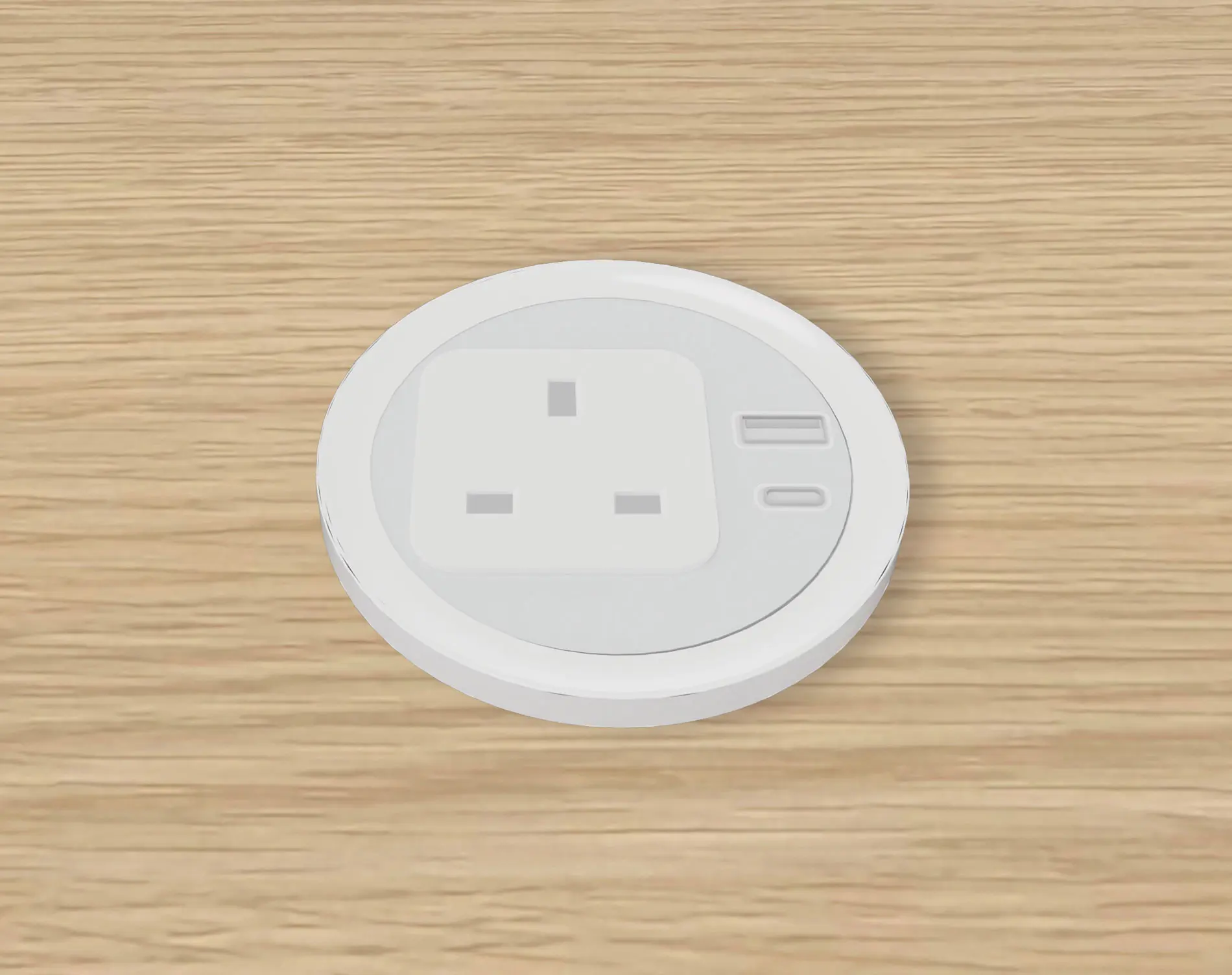 Power block equipped with 3 power outlets + 1 USB-A 5V port + 1 USB-C 5V port + 1 cable entry port.