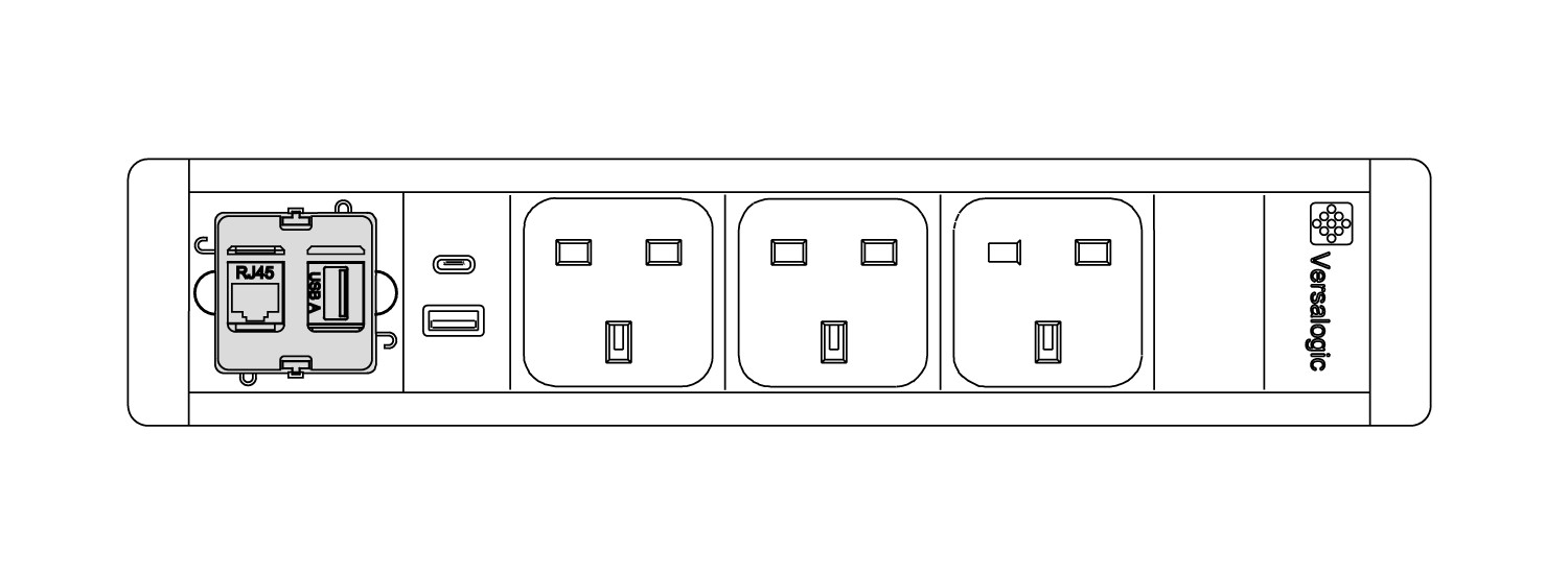 Attaches to the underside of the Top Access units via a clip-on mechanism. - Electrical socket strip kits