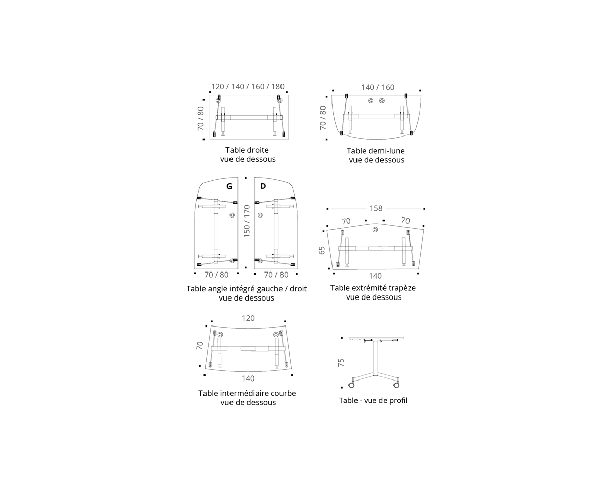 – 2 pre-installed round cable grommets integrated under the tabletops.