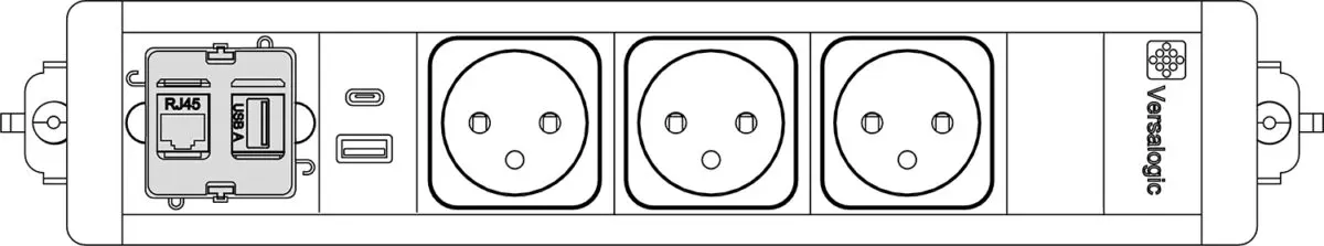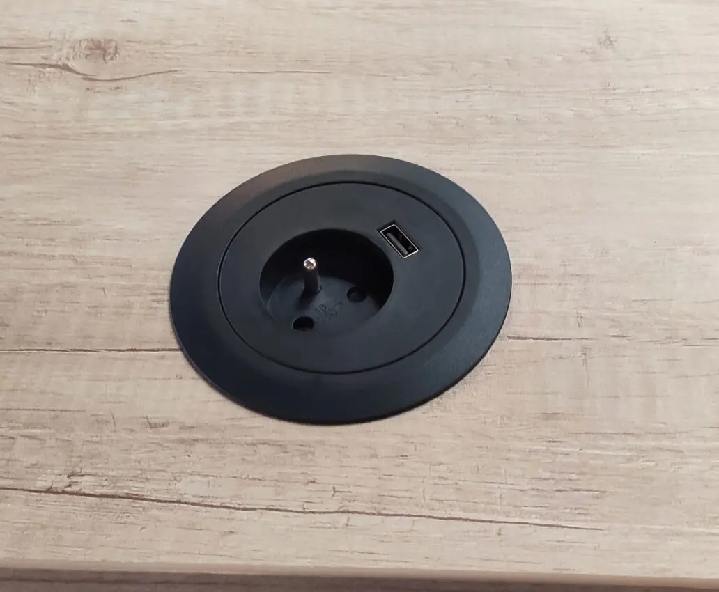 Bloc électrique équipé de 3 PC + 1 USB A 5v + 1 USB C 5v + 1 passage de câbles