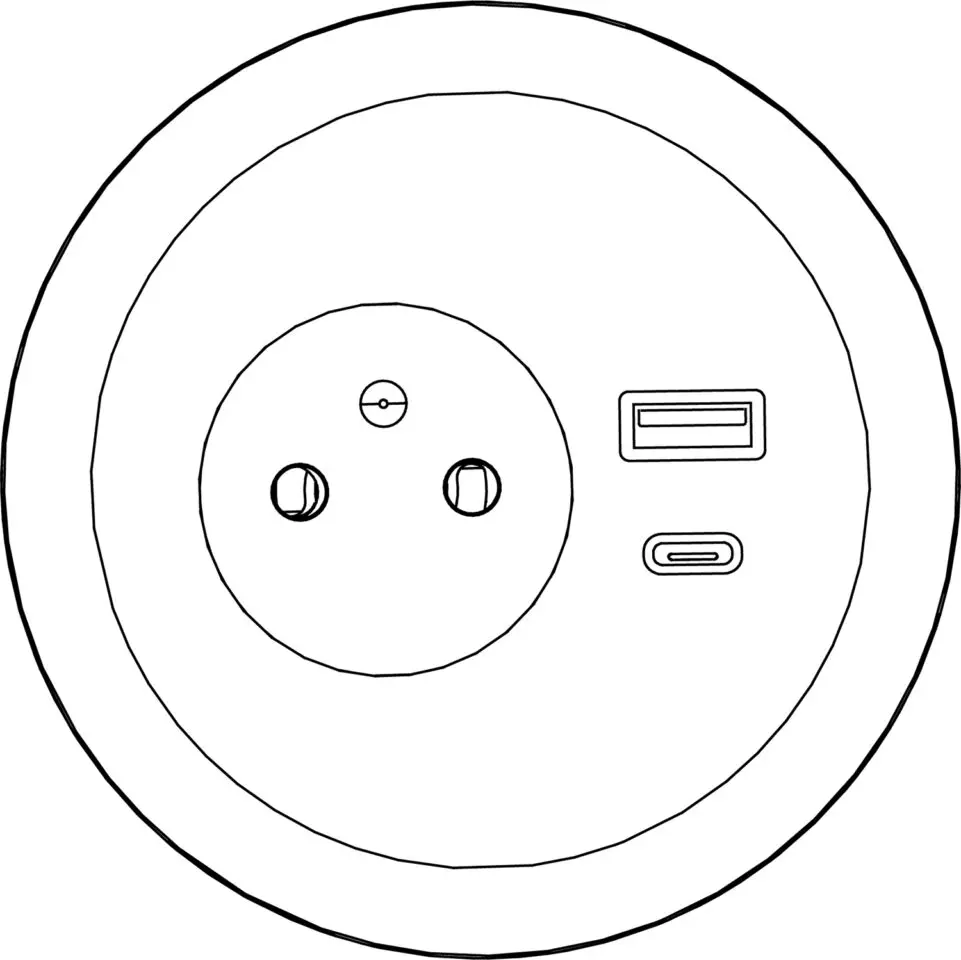 Bloc électrique équipé de 1 PC + 1 USB A 5v + 1 USB C 5 v.